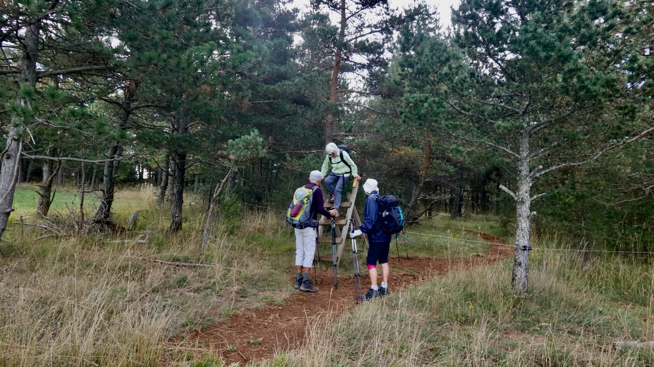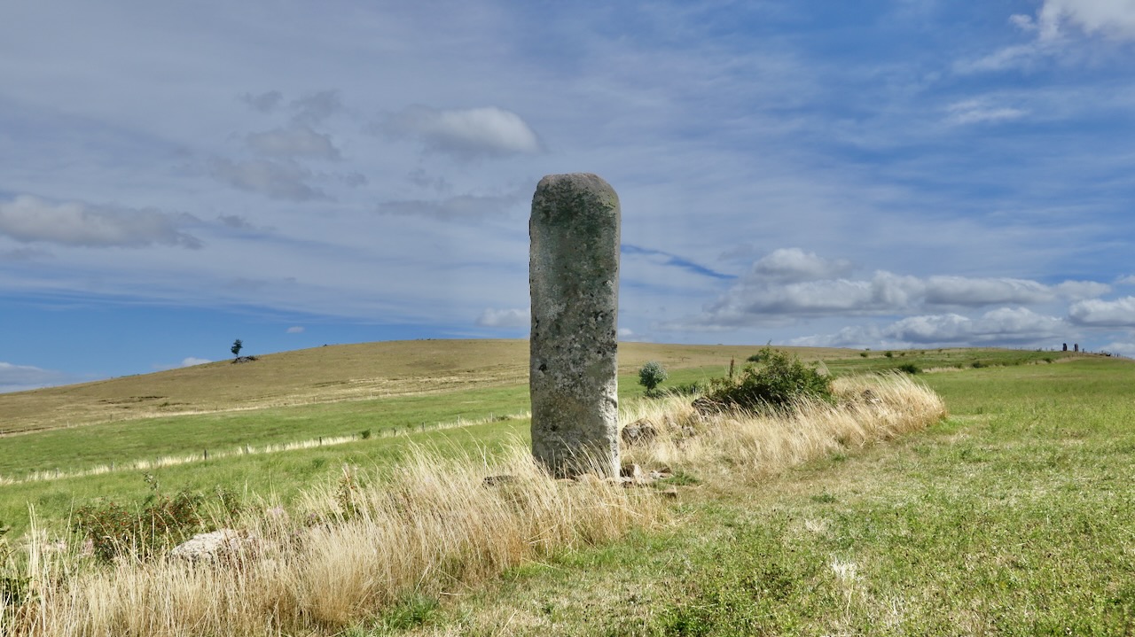Aujourd’hui nous partons à la découverte de la seconde concentration de mégalithes en Europe après Carnac, la Cham* des Bondons, qui comporte 154 menhirs, 3 dolmens et 30 tertres funéraires dispersés sur un magnifique plateau granitique. Si les chemins que l’on va parcourir sont tout à fait adaptés au poids de nos ans, il faut malgré tout les soulever de temps à autre pour franchir de modestes obstacles.